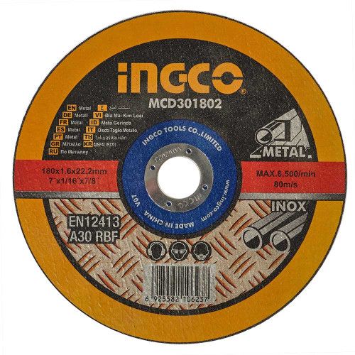 Абразивний відрізний диск по металу 180×1,6×22,2 мм INGCO тип 41. Даний диск має діаметр 180 мм і товщину 1,6 мм, що робить його ідеальним для різання металу. Він виготовлений з якісного абразивного матеріалу, що забезпечує його тривалий термін служби. Цей диск є незамінним інструментом для різання металевих деталей на будівництві, ремонті та виробництві.