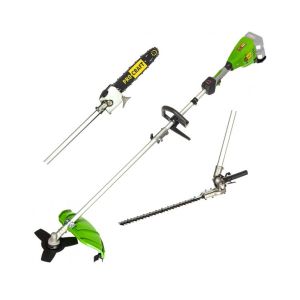 Інструмент відрізняється плавним пуском, завдяки чому робота починається м’яко і без ривків. Конструкція має розбірну штангу, що робить зберігання та транспортування максимально зручними. Широкий діаметр різу до 360 мм, довжина шини 30 см та ланцюг аналогічного розміру дозволяють виконувати різні завдання з легкістю. Подвійні ножиці з лезом довжиною 400 мм підходять для точного підрізання гілок і кущів.