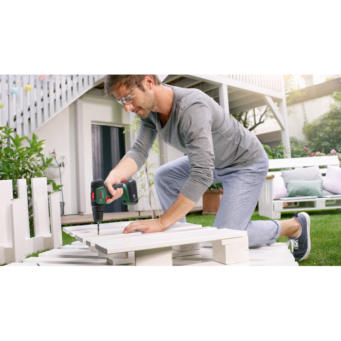 Дриль-шуруповерт Bosch UniversalDrill 18V (2х18 В, 1.5 А*год) (06039D4002) також має інші унікальні властивості та переваги: - Безшумна робота, що дозволяє використовувати інструмент в будь-який час дня без шкоди для вашого слуху. - Можливість заряджати акумулятор протягом короткого часу. - Чіп-протектор, що захищає аккумулятор від перевантаження та перегріву. - Комплектація: дриль-шуруповерт, два акумулятора 18V, зарядний пристрій, кейс для зберігання та транспортування.