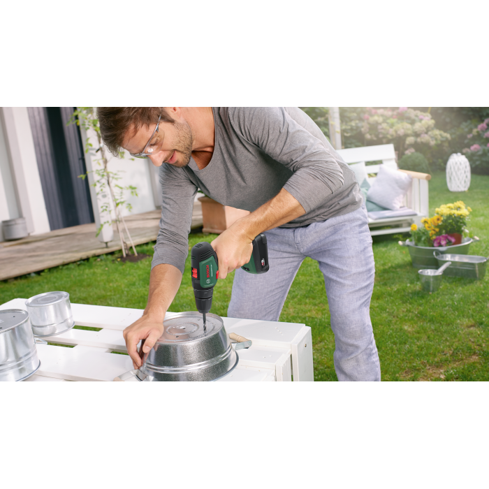 Акумуляторний дриль-шуруповерт Bosch UniversalDrill 18V (2х18 В, 1.5 А*год) (06039D4002) ідеально підходить для робіт у будівництві, ремонті та різних домашніх завдань. Він може використовуватися для свердління отворів у дереві, металі, пластикі та для завинчування шурупів. Цей дриль-шуруповерт є незамінним помічником для майстрів та приватних осіб, які цінують якість та надійність.