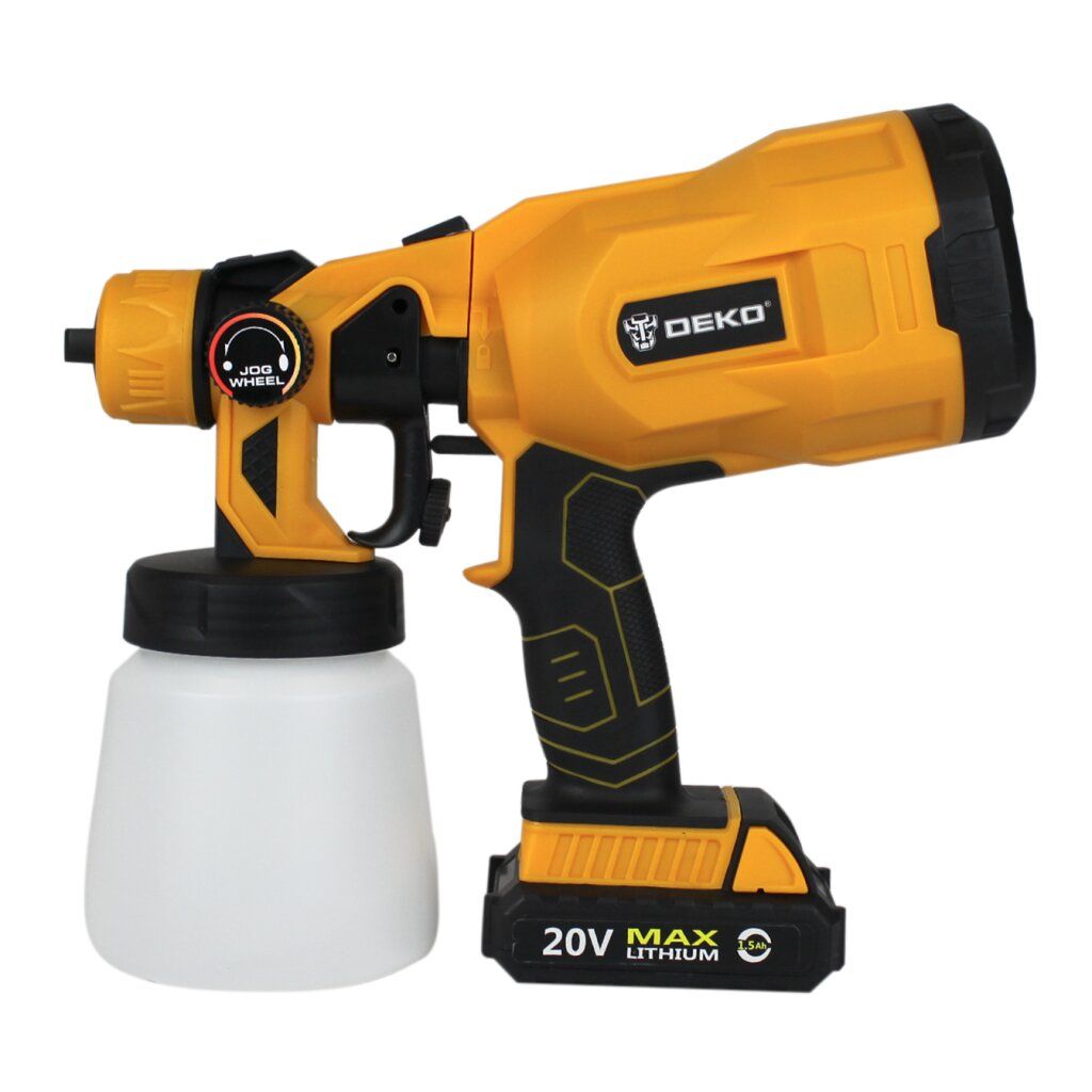 Електричний фарбопульт DEKO - має сучасний дизайн, надійний у роботі, простий в експлуатації та обслуговуванні. Плавне регулювання подачі повітря та фарби зручним спусковим гачком.
