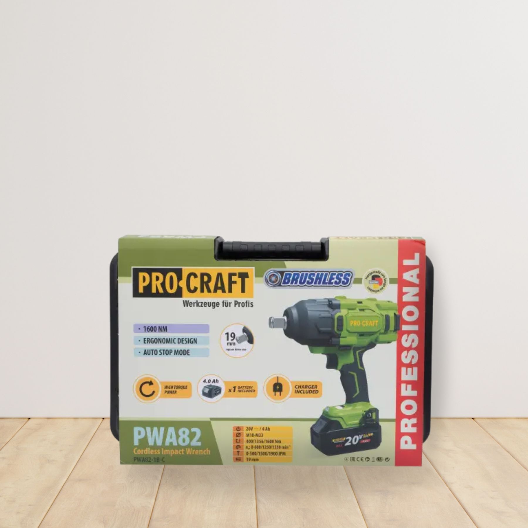 Акумуляторний гайковерт Procraft PWA82 – це високопродуктивний інструмент для важких завдань, що поєднує потужність, надійність і комфорт у роботі. Комплект із акумулятором і зарядним пристроєм у зручному кейсі робить цю модель ідеальним вибором для професійного використання та домашнього застосування.