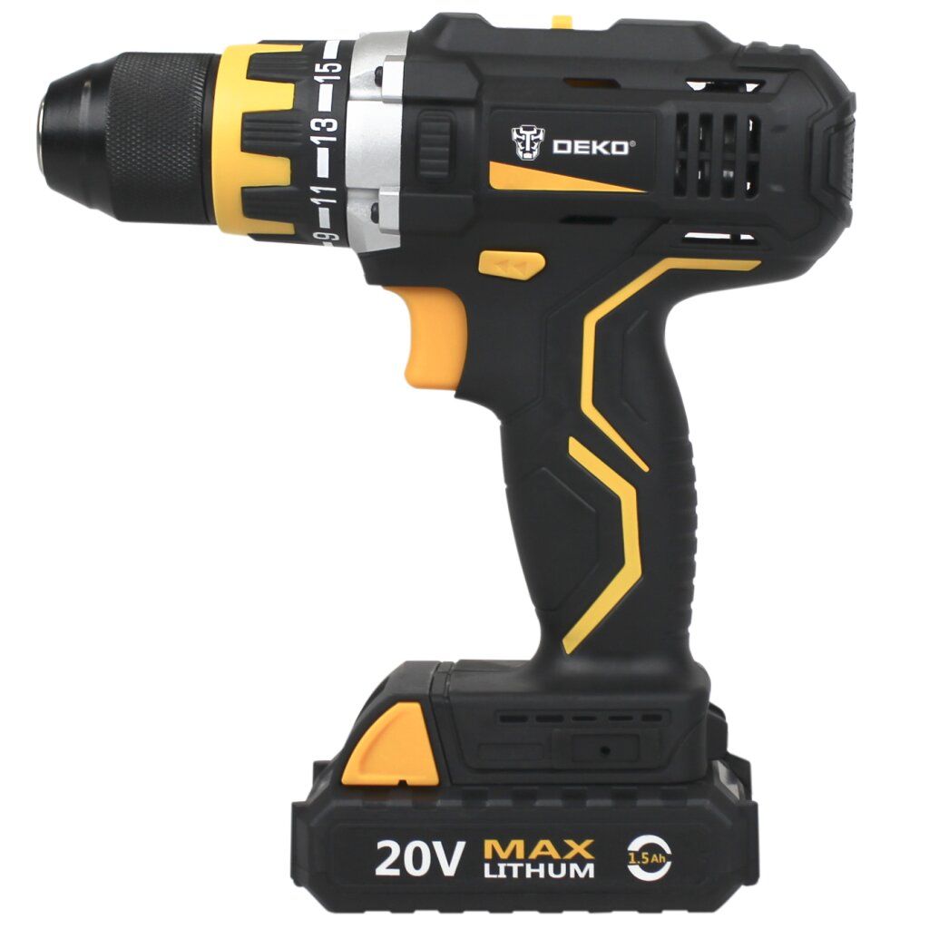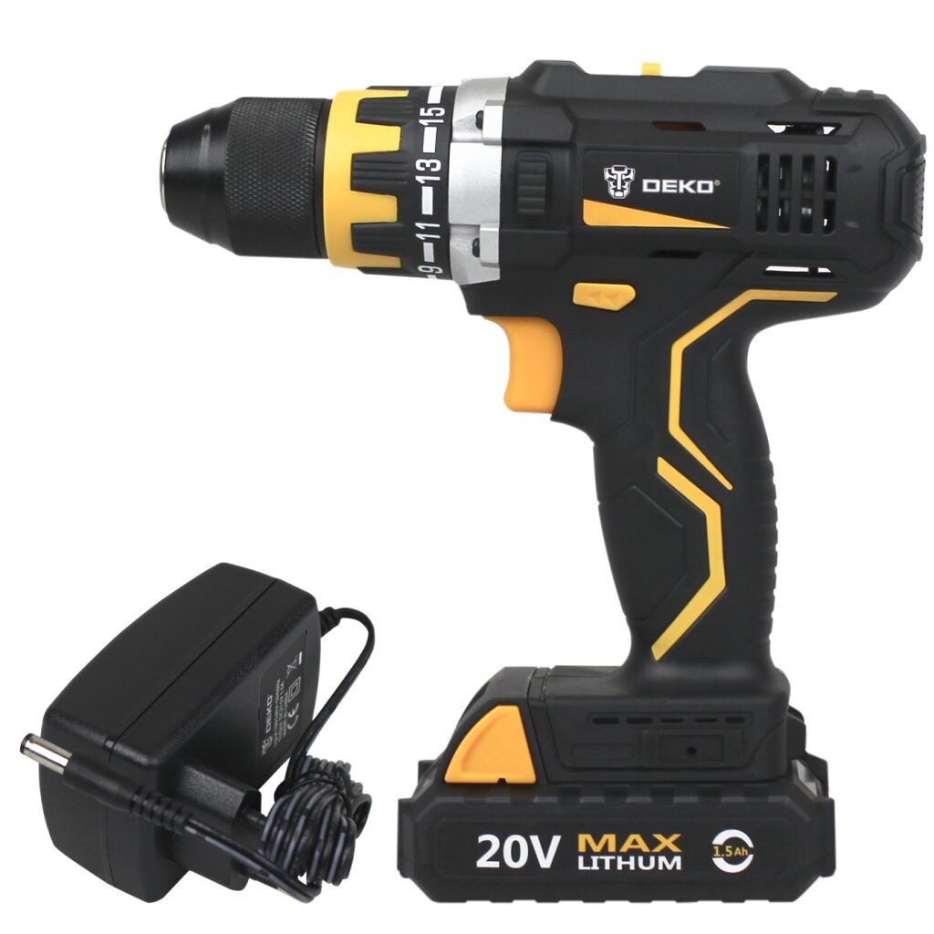 Акумуляторний дриль DEKO 20V max 1/2 дюйма з максимальним моментом, що крутить, 42N.m поєднує в собі подвійний діапазон швидкості і 15 положень зчеплення в компактному розмірі, який забезпечує точний контроль для свердління дерева, металу, пластику, і всі завдання затвердіння.
