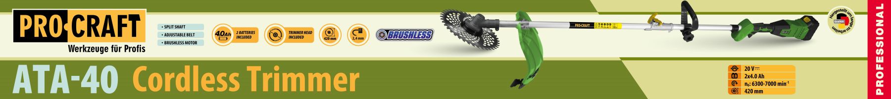Тример PRO-CRAFT ATA-40 - це відмінний вибір для тих, хто шукає надійний, продуктивний і зручний інструмент для догляду за садом.