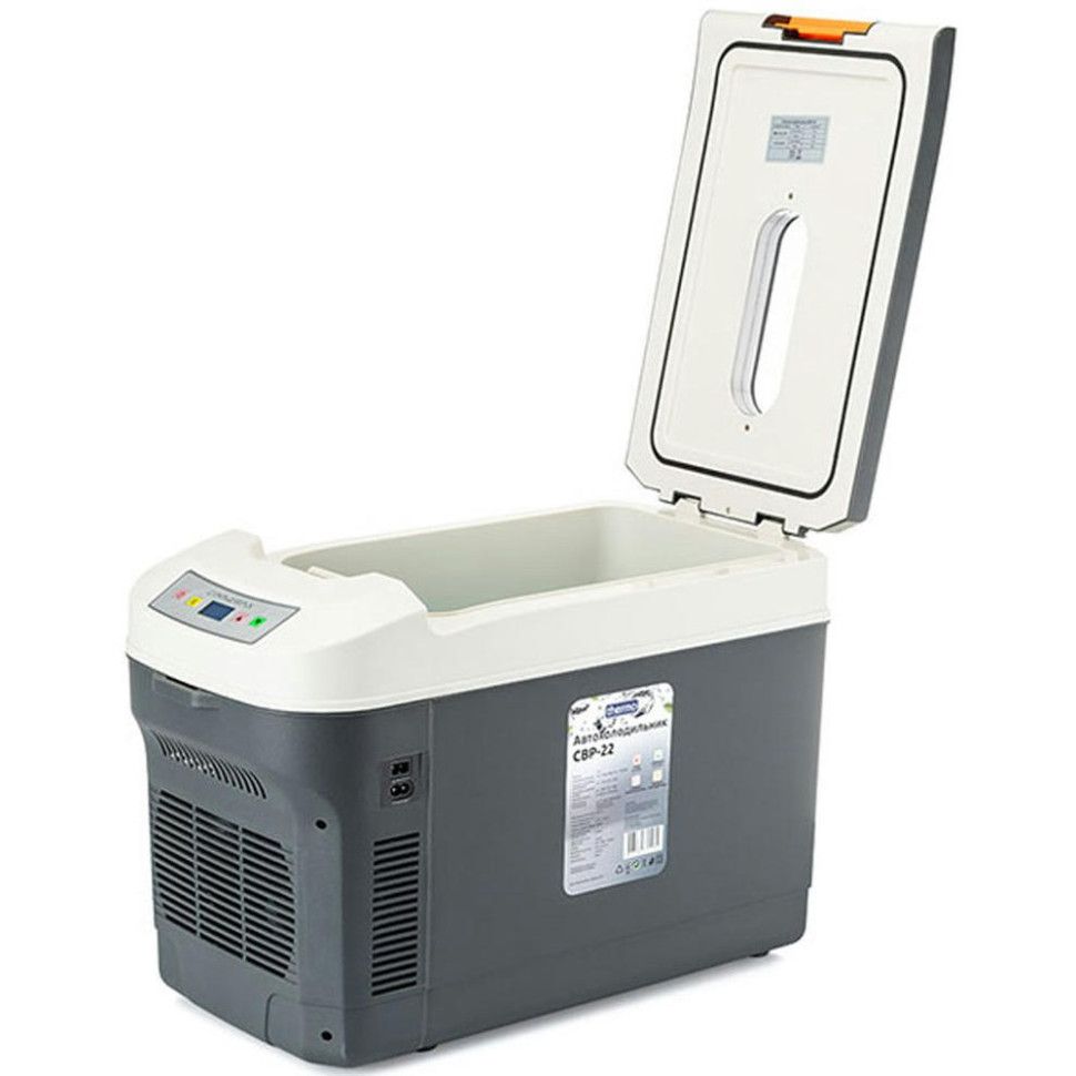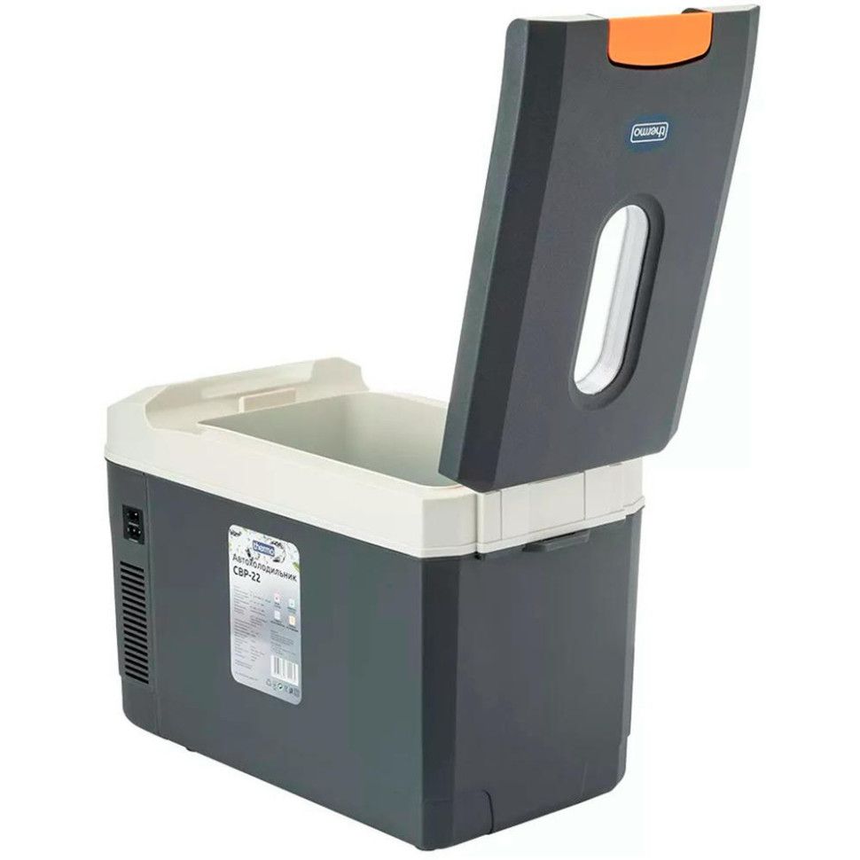 Портативний автомобільний холодильник Thermo призначений для зберігання та охолодження продуктів і напоїв під час поїздок легковим і вантажним транспортом. Пристрій компактний, не займає багато місця в салоні або кабіні та підходить для тривалого використання в дорозі, зокрема в літній період.