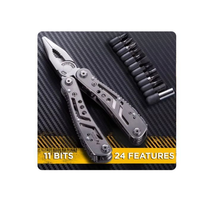 Багатофункціональні універсальні діагональні плоскогубці 24 в 1 - це інструмент, який поєднує в собі 14 різних функцій. Вони мають сталевий колір і можуть використовуватись як плоскогубці, кусачки д/дроту, ніж, шліцова викрутка, лінійка та металева пилочка д/нігтів. Цей мультитул є кишеньковим, мікротулом і брелоком для ключів, що робить його зручним для безлічі ситуацій і місць використання.