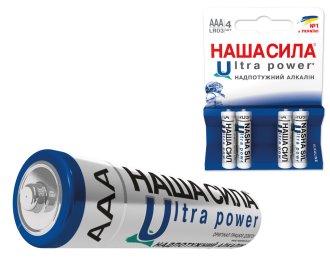 Батарейки LR03 (AAA) Ultra Power НАША СИЛА — надійне джерело енергії для щоденного використання. Завдяки підвищеній ємності вони забезпечують тривалу роботу пультів, іграшок, ліхтариків, бездротових мишок та іншої побутової техніки. Упаковка містить 4 елементи живлення у зручному блістері. Оптимальне співвідношення ціни та якості робить ці батарейки вигідним вибором для дому чи офісу.