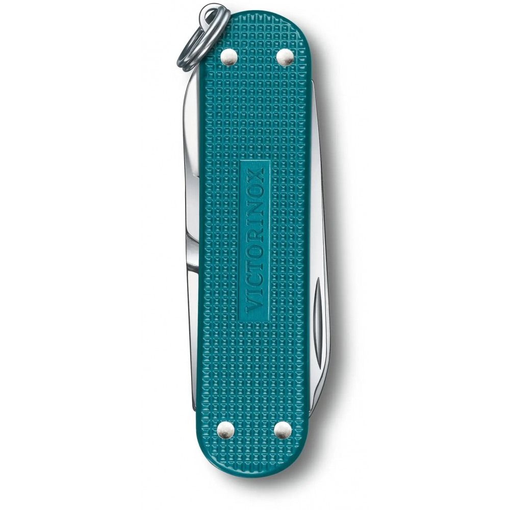 Це CLASSIC SD Alox Colors Wild Jungle ніж, який має довжину 58мм та 1 шар. Він має 5 функцій та ріфлений зелений колір. Цей ніж поставляється з ножницями.