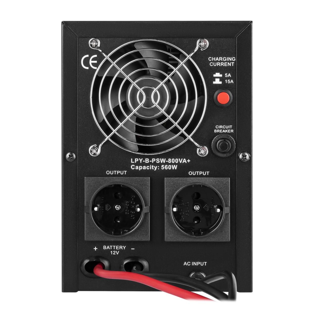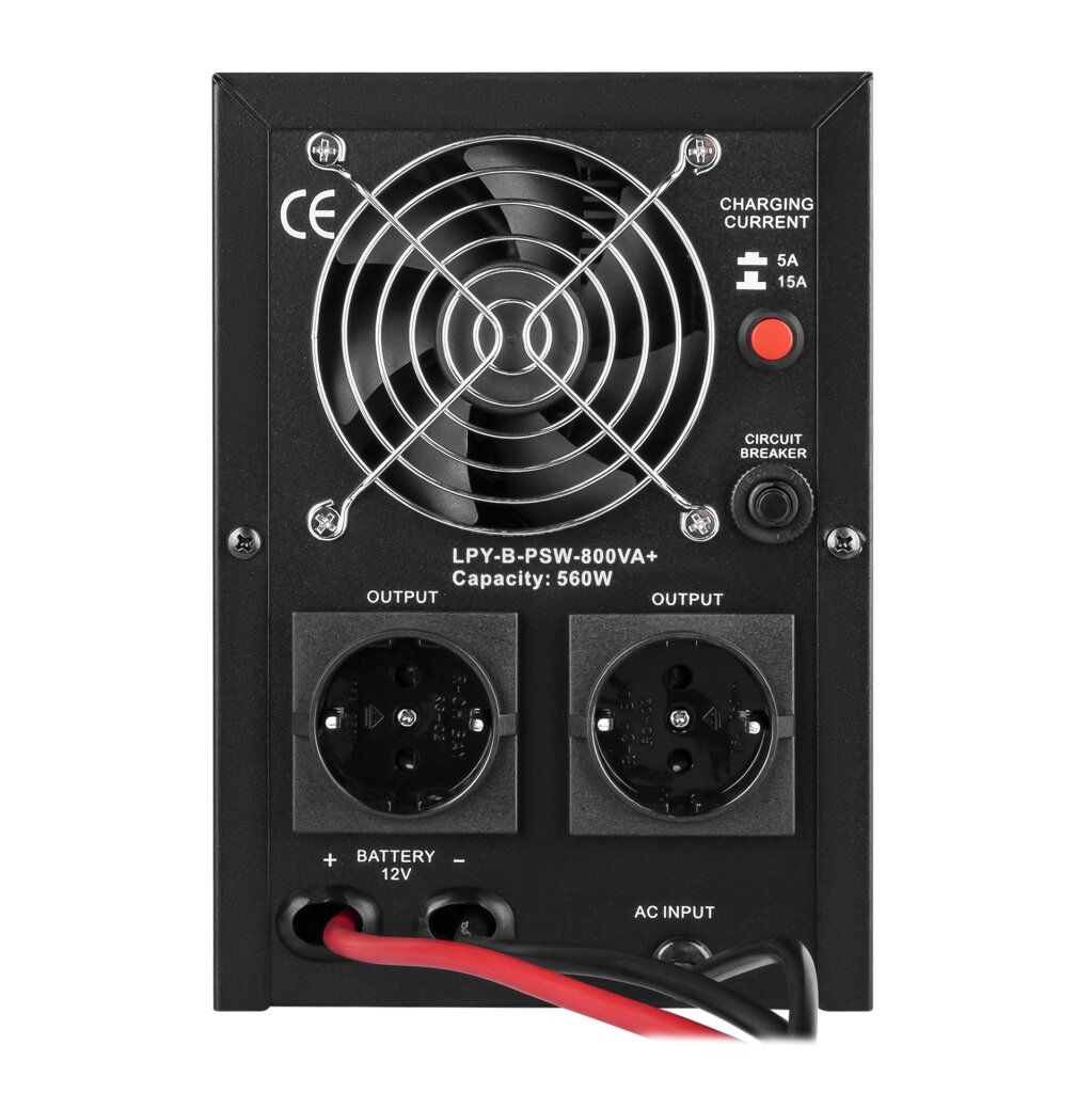 ДБЖ з правильною синусоїдою LPY-B-PSW-800VA+ (560Вт) 5A/15A має потужність 800/560 Вт.