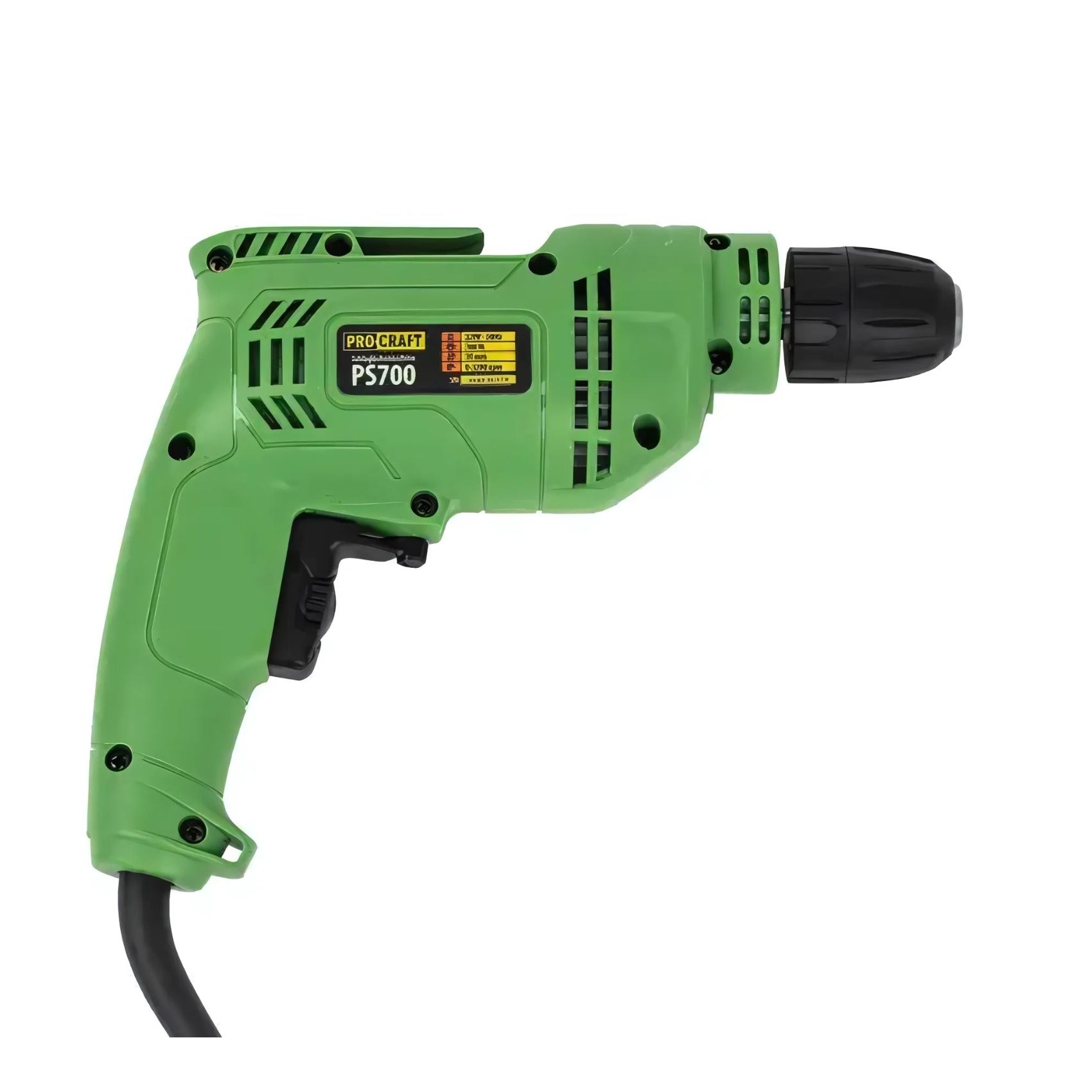 Дриль Procraft PS700 безударна ідеально підходить для свердління отворів в м'яких та середньої жорсткості матеріалах, таких як дерево, пластик, легкий метал. Вона також може використовуватися для зняття заточки невеликих свердел або для закручування шурупів.