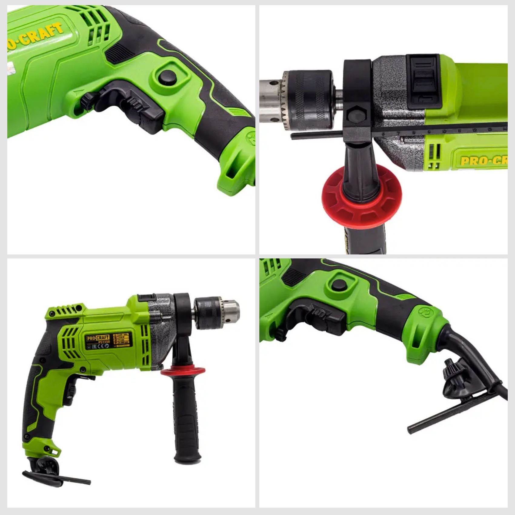 Однією з головних переваг дрилі Procraft PS1350 є її висока потужність, яка дозволяє швидко і ефективно виконувати різноманітні завдання. Крім того, дриль оснащена зручним зубчастим патроном, який забезпечує надійне кріплення інструменту. Компактний розмір і легка вага дрилі дозволяють зручно користуватися нею впродовж тривалого часу без відчутту втоми. Також варто зазначити наявність ударної функції, яка дозволяє легко пробивати отвори у бетонних стінах.