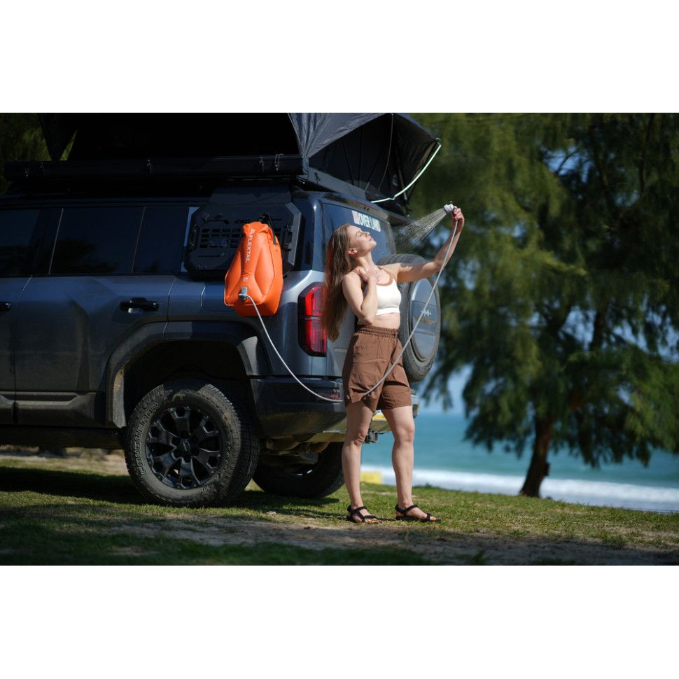 Контейнер для води з насосом та душовою лійкою Flextail Tiny Shower Bag призначений для використання під час кемпінгу, автоподорожей, відпочинку на природі, на дачі або пляжі. Автономна система з вбудованим електричним насосом дозволяє приймати душ, мити спорядження, посуд або інші предмети без підключення до водопроводу чи електромережі. Компактна конструкція поєднує місткий резервуар і малу вагу для зручного транспортування.