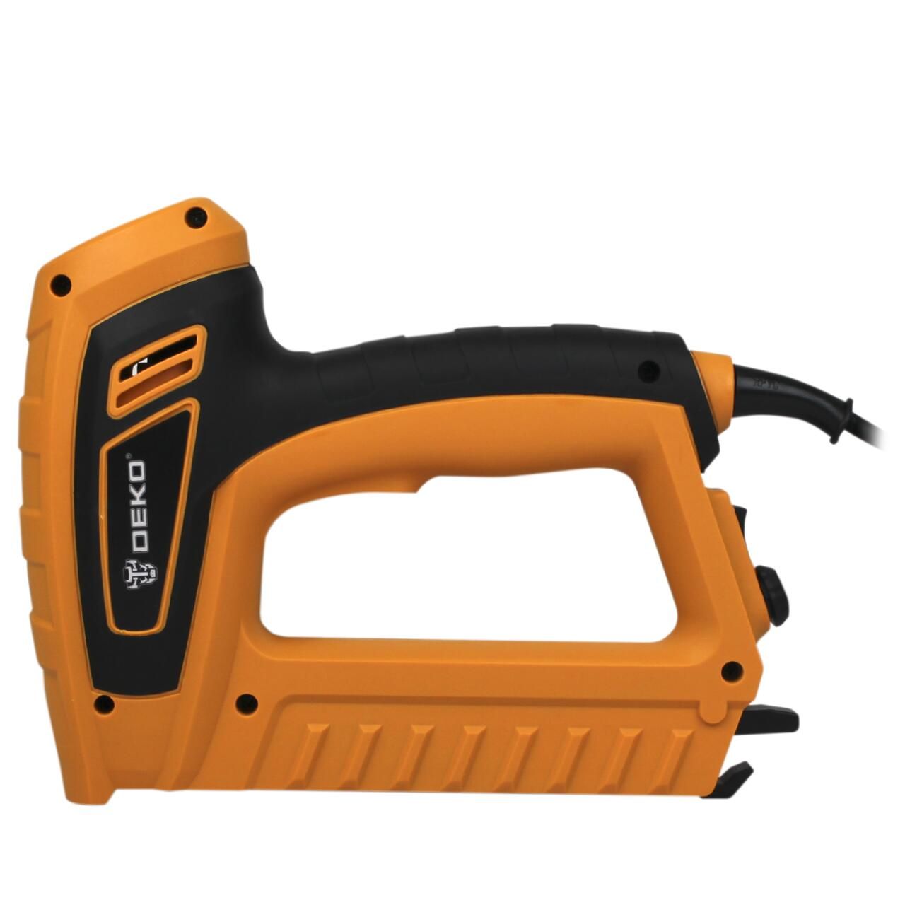 Електричний степлер DEKO відрізняється сумісністю та портативністю. Цей степлерний пістолет із упором на ергономіку гарантує комфорт. Виготовлений із міцних матеріалів, відрізняється гарною якістю та міцністю. Обладнаний ручкою регулювання потужності, користувачі можуть регулювати потужність відповідно до різних потреб роботи.