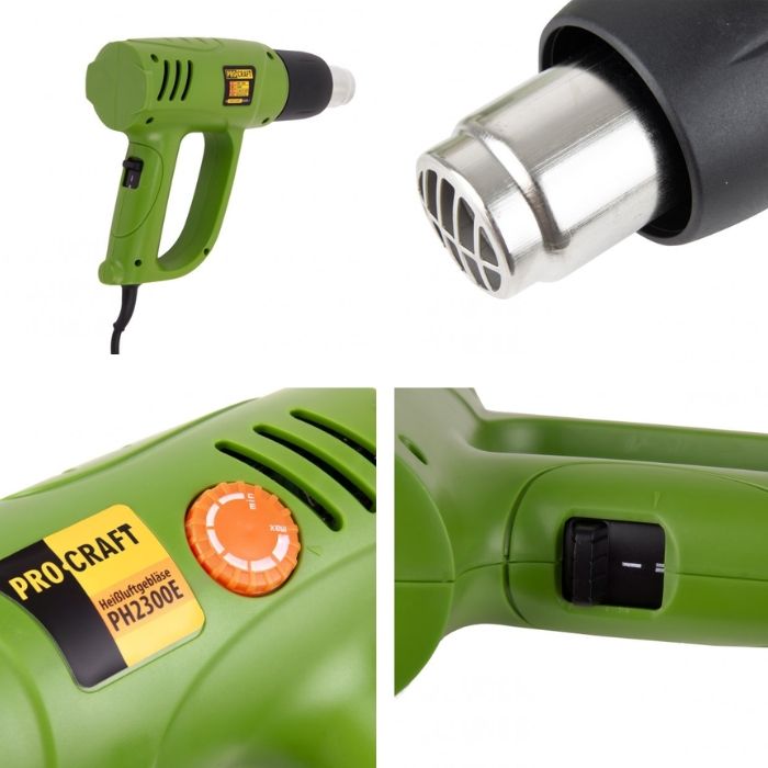 Фен промисловий Procraft PH2300Е - це потужний і надійний інструмент для роботи з волоссям. Він має плавне регулювання температури, що дозволяє точно налаштувати його для різних типів волосся та задач. Фен також має ступеневе регулювання повітряного потоку, що дозволяє змінювати його силу від найбільшої до найменшої. Мінімальна робоча температура становить 70 °С, а максимальна - 600 °С. Особливістю даного фена є регулювання подачі повітря, що дозволяє додатково налаштовувати його режими роботи. Споживана потужність фена складає 2200 Вт.