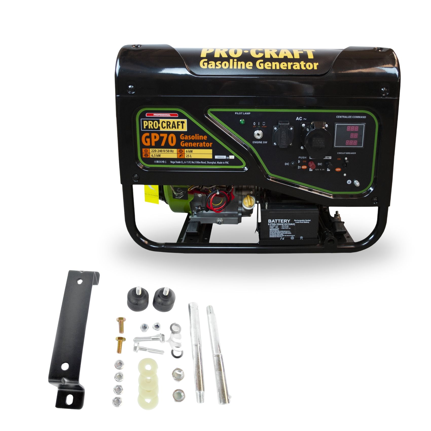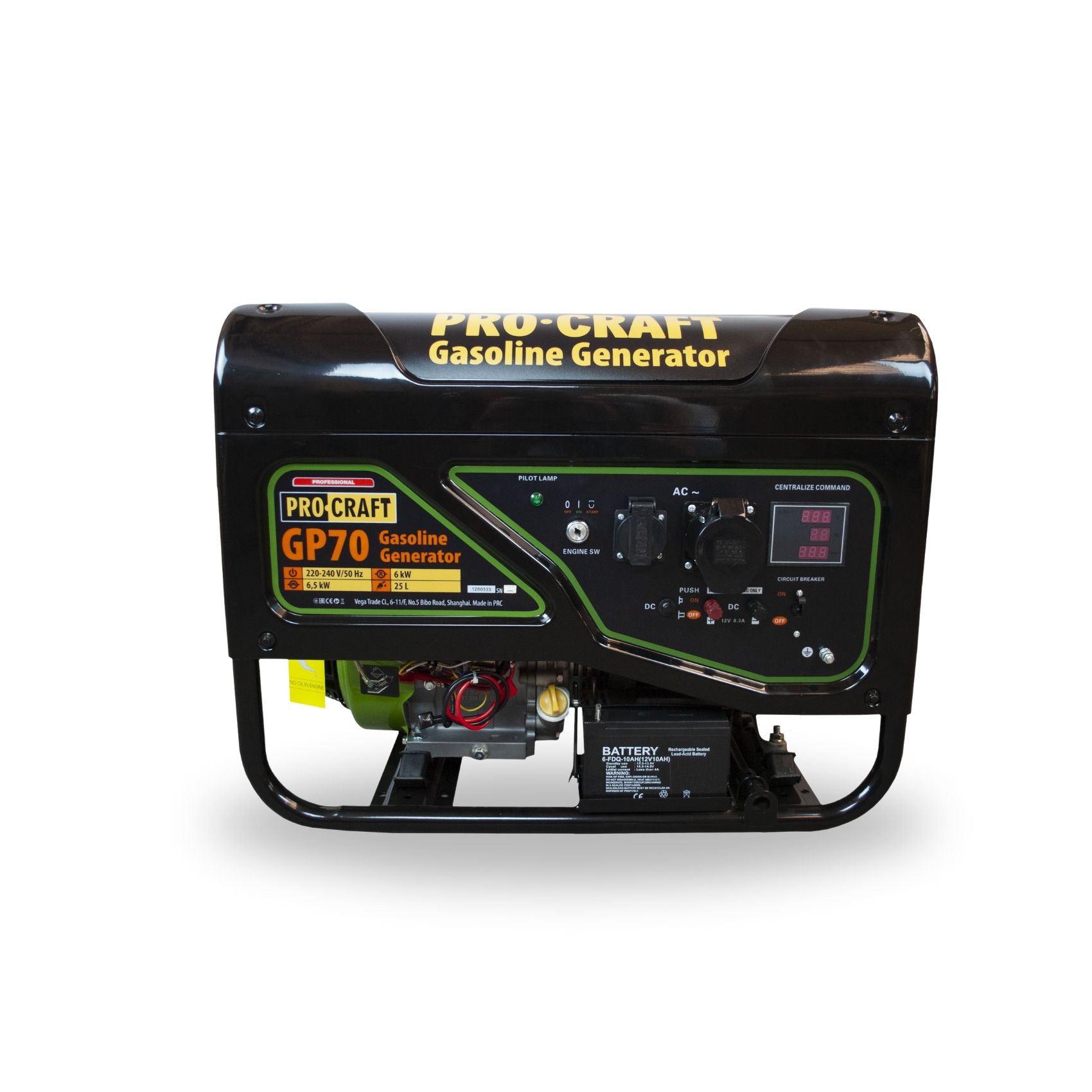 Інші унікальні властивості і переваги генератора бензинового Procraft GP70: низький рівень викидів шкідливих речовин, можливість використання в любий час доби, легка транспортування, можливість використання як резервне джерело електроживлення.