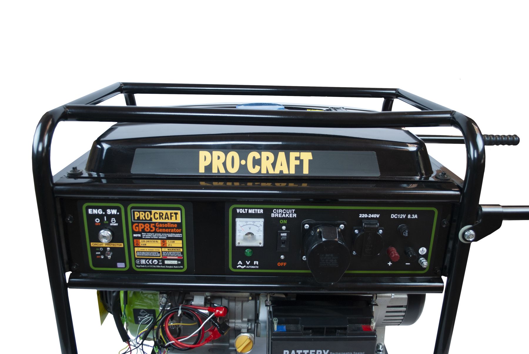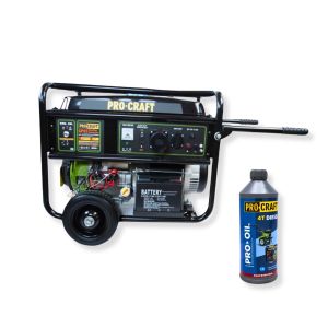 Генератор бензиновий Procraft GP85 + Олива Procraft 4T Diesel 1.4л - це надійний і потужний генератор, який вміщує в собі багато корисних функцій та особливостей. Він забезпечить Вам незалежність від електромережі та постійний доступ до електроенергії в будь-якому місці і в будь-який час. Цей генератор працює на бензині і має велику номінальну потужність в 7.5 кВт та максимальну потужність в 8 кВт, що дозволяє використовувати його для різних потреб. Він оснащений синхронним альтернатором, що забезпечує стабільний та безперебійний роботу. Крім того, цей генератор має клас захисту IP I, що гарантує надійний захист від вологи та пилу.