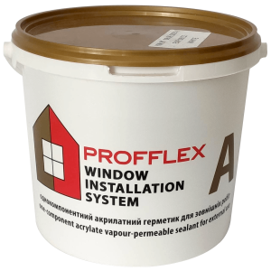 PROFFLEX A - однокомпонентний акрилатний герметик з високою паропроникністю. Герметик призначений для виконання зовнішнього шару монтажного шва відповідно до ДСТУ-Н Б В.2.6-146:2010, з допустимою деформацією монтажного шва не більше 15%, для герметизації зовнішнього контуру віконних, дверних і балконних конструкцій.