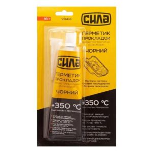 Герметик прокладок високотемпературний +350 °С, 100% силіконовий, чорний 85г СИЛА має наступні переваги: - Висока температурна стійкість до +350 °С, дозволяє використовувати герметик в умовах високих температур; - 100% силіконовий склад забезпечує надійну герметизацію і довговічність; - Чорний колір герметика відмінно підходить для використання в автомобільному ремонті; - Легка наноситься і розподіляється по поверхні, забезпечуючи швидке і якісне ущільнення;