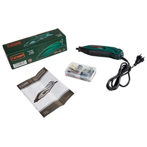 Легкий і зручний у використанні: Гравер NOWA SP 250d має компактний розмір і невелику вагу, що дозволяє зручно тримати його в руках. Він також оснащений ергономічною ручкою, яка забезпечує комфортний захват під час роботи.