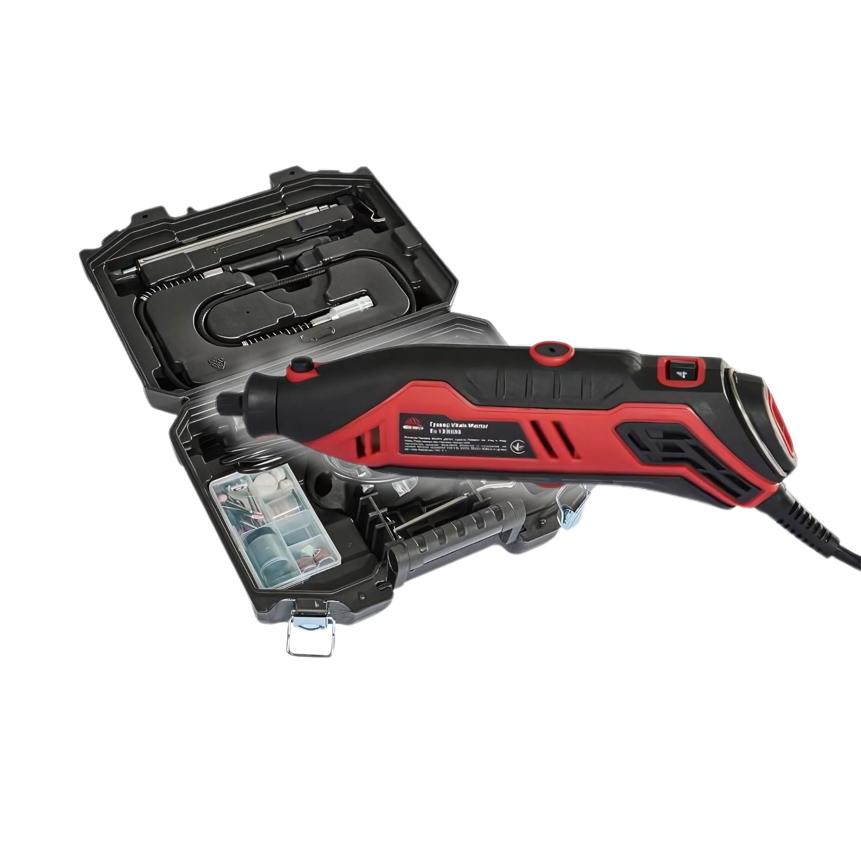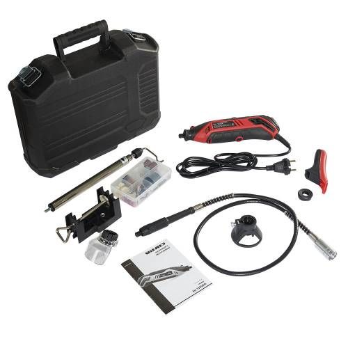 Важливою особливістю цього електроінструменту є велика швидкість обертання холостого ходу, що забезпечує чудову продуктивність і якість роботи. Швидкість обертання холостого ходу регулюється колесом-регулятором у межах 10000–35000 об/хв. Велика швидкість обертання дає змогу виконувати точні роботи. Пристрій оснащений спеціальною кнопкою, яка за потреби швидко зупинить шпиндель. Для надійної фіксації робочих насадок використовуються цанги: 2,3; 3,2 мм.