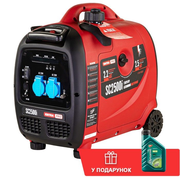 Інверторний бензиновий генератор КВІТКА PRO SC2500i (2.5 кВт) (110-7032) стане надійним джерелом електропостачання у вашому будинку або на дачі. Цей генератор відмінно підходить для використання у побуті, на будівництві чи під час відпочинку на природі. Він забезпечить стабільний струм для різноманітних пристроїв, включаючи побутову техніку, світло, комп'ютери та інше.