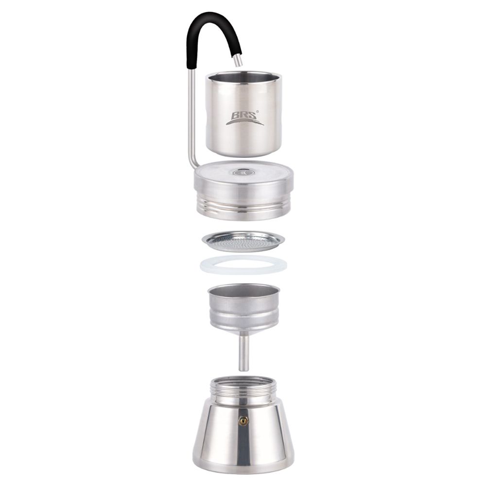 Переваги кавоварки BRS-TC05: - Простота використання забезпечує швидке і легке приготування кави. - Компактні розміри дозволяють забрати кавоварку з собою в будь-яку подорож, без зайвого обсягу в багажі. - Фільтр з нержавіючої сталі забезпечує насичений смак і аромат кави, фільтруючи усі непотрібні домішки. - Матеріал виготовлення - харчова нержавіюча сталь - забезпечує довговічність та стійкість до корозії. - Підходить як для використання на природі, так і в побутових умовах.