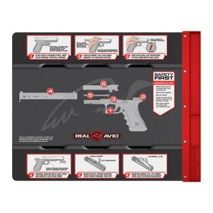 Коврик настільний Real Avid Glock Smart Mat виготовлений з високоякісного неопрену, коврик забезпечує м'яку і пружну поверхню для монтажу та розбирання інструменту. Коврик також захищає стіл від подряпин і ударів, допомагаючи підтримувати його в належному стані. Вага коврика всього 0.059 кг, що дозволяє легко переносити його та брати з собою у похід чи на полігон. Гарантія на коврик - 3 місяці.