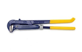 Ключ трубний 90 ° 1.5 ", CrV, кований, це високоякісний інструмент, спеціально розроблений для роботи з трубами. Він має довгу ручку із L-подібними губками для зручного захоплення і фіксації труб. Виготовлений зі сталі, цей ключ має високу міцність і стійкість до корозії, що забезпечує довгий термін його експлуатації. Він ідеально підходить для виконання будівельних, ремонтних та інших робіт з трубопроводами.