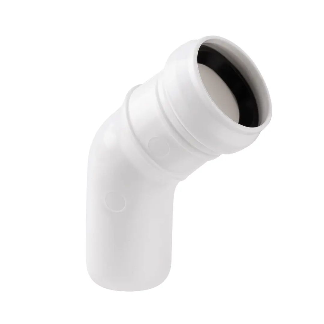 Це коліно з поліпропілену білого кольору підходить для використання в каналізаційних системах. Воно забезпечує надійне з'єднання труб і дозволяє ефективно відводити стічні води.