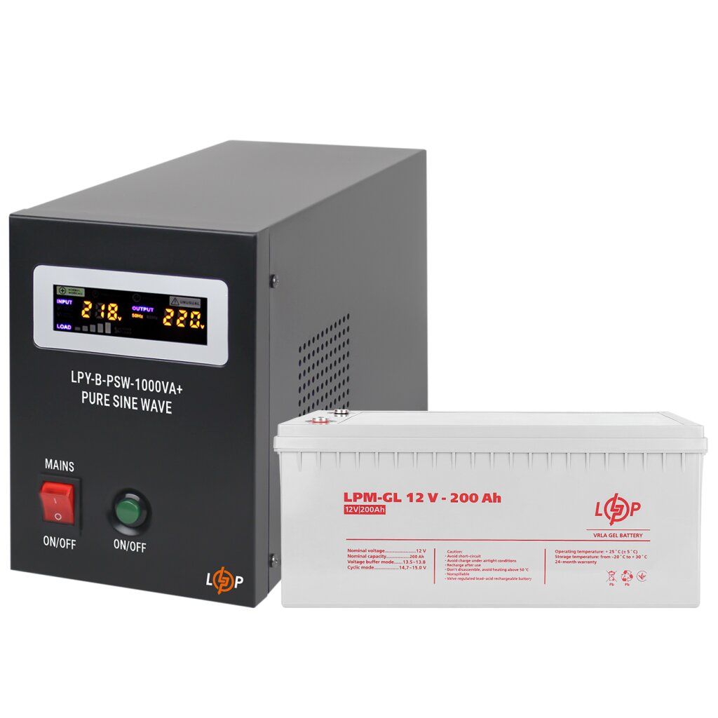Комплект резервного живлення LogicPower ДБЖ B1000VA + гелева батарея 2400W розроблено та введено в експлуатацію для забезпечення безперебійного живлення електричних газових котлів, систем відеоспостереження, комп'ютерної техніки та інших пристроїв, що працюють у режимі 24/7/365. Комплект може бути використаний як джерело безперебійного живлення для бомбосховища.