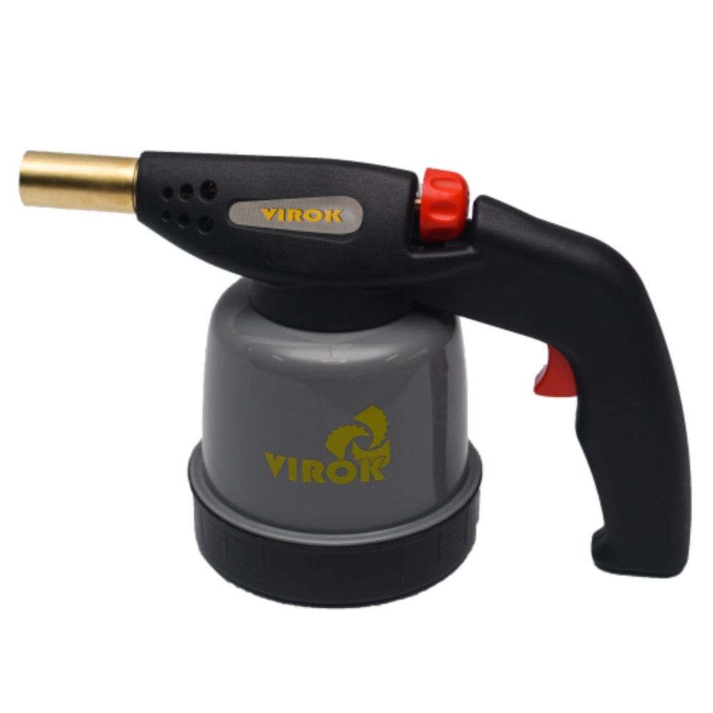Газова паяльна лампа VIROK із п’єзозапалом працює від стандартних цангових балонів 190 г. Забезпечує стабільне полум’я в будь-якому положенні (360°) і використовується для пайки, нагріву, розпалювання та побутових робіт.