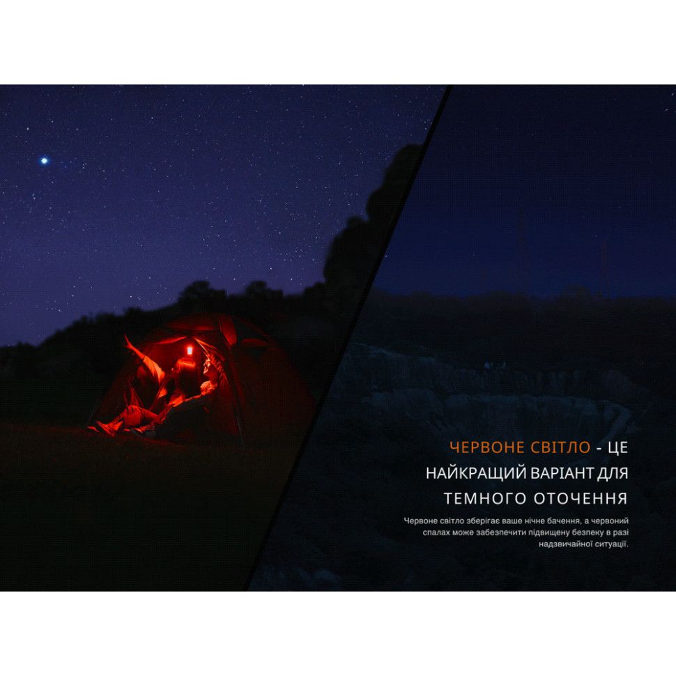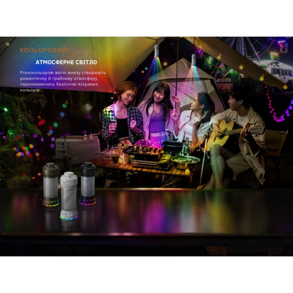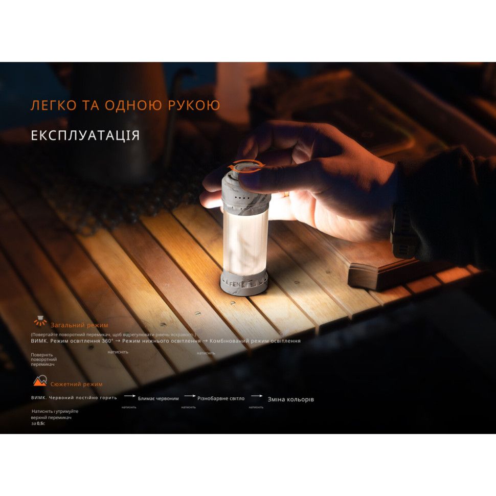 Кемпінговий ліхтар Fenix CL22R чорного кольору призначений для освітлення наметів, кемпінгів, альтанок і приміщень під час відпочинку на природі або в аварійних ситуаціях. Забезпечує рівномірне кругове освітлення та зручне керування режимами, підходить для автономного використання завдяки вбудованому акумулятору.