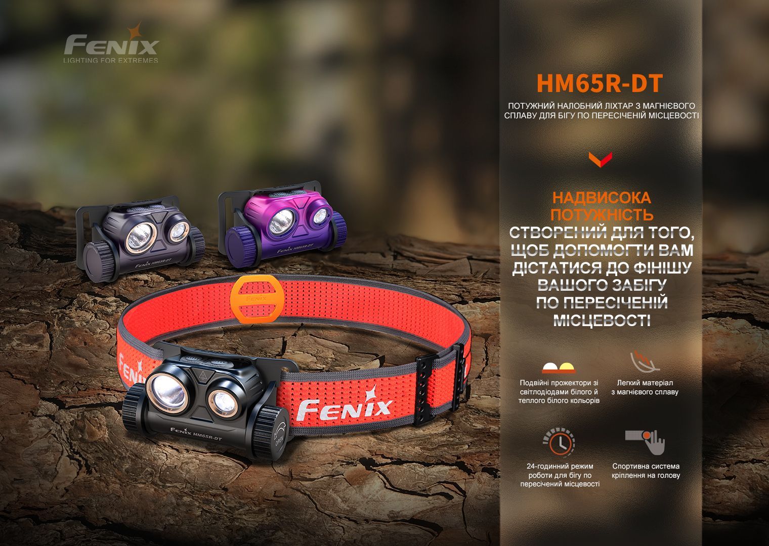 Ліхтар Fenix HM65R-DT ідеально підходить для бігу, тріалу, риболовлі, похідництва, мисливства, кемпінгу, роботи на вулиці та багатьох інших активностей. Він забезпечить яскраве та потужне освітлення в будь-який час доби, зробить вашу активність комфортнішою та безпечнішою.