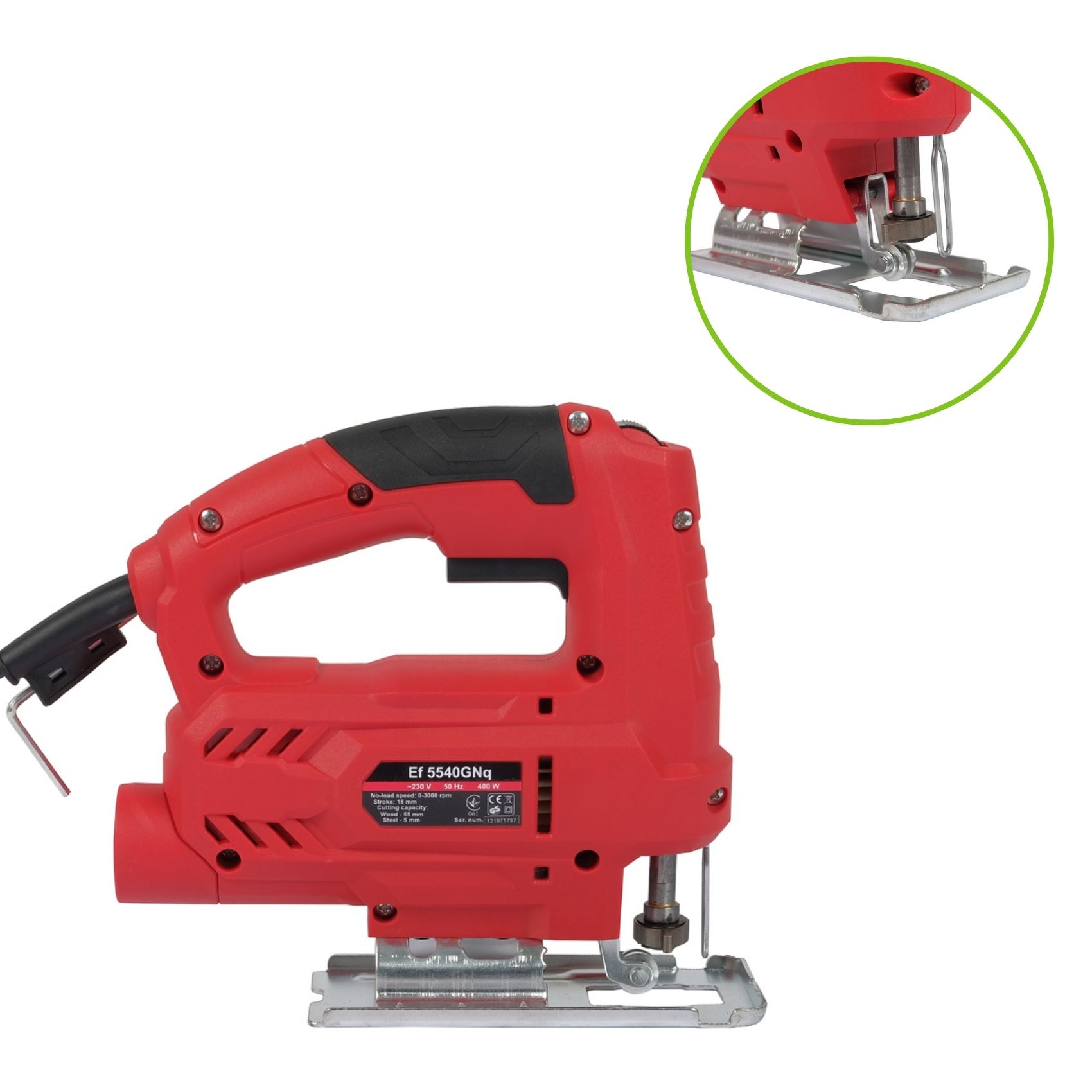 Регульована швидкість: Багатоступенева система дозволяє налаштовувати частоту ходу штока в діапазоні 800–3000 об/хв.