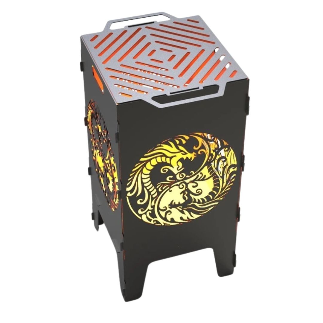 Мангал-барбекю Carino Інь і Янь — розбірна модель з символічним дизайном, що поєднує практичність і виразний зовнішній вигляд. Декоративні вирізи створюють ефект підсвічування під час горіння та додають атмосферності зоні відпочинку. Метал товщиною 3 мм забезпечує надійність і тривалий ресурс використання.