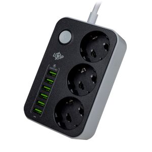 Універсальність: Три розетки та шість USB-портів дозволяють одночасно підключати кілька пристроїв, що забезпечує максимальну зручність.