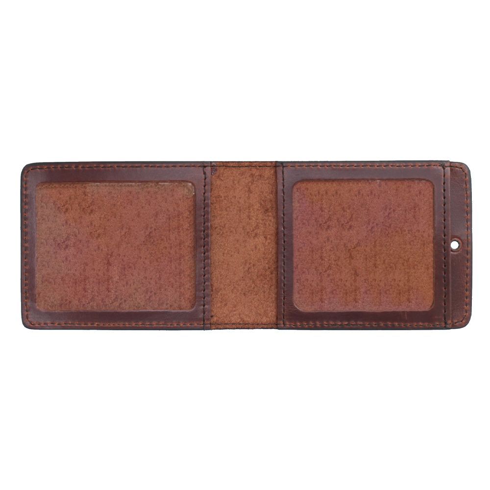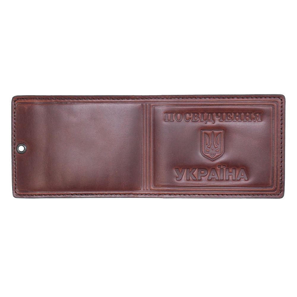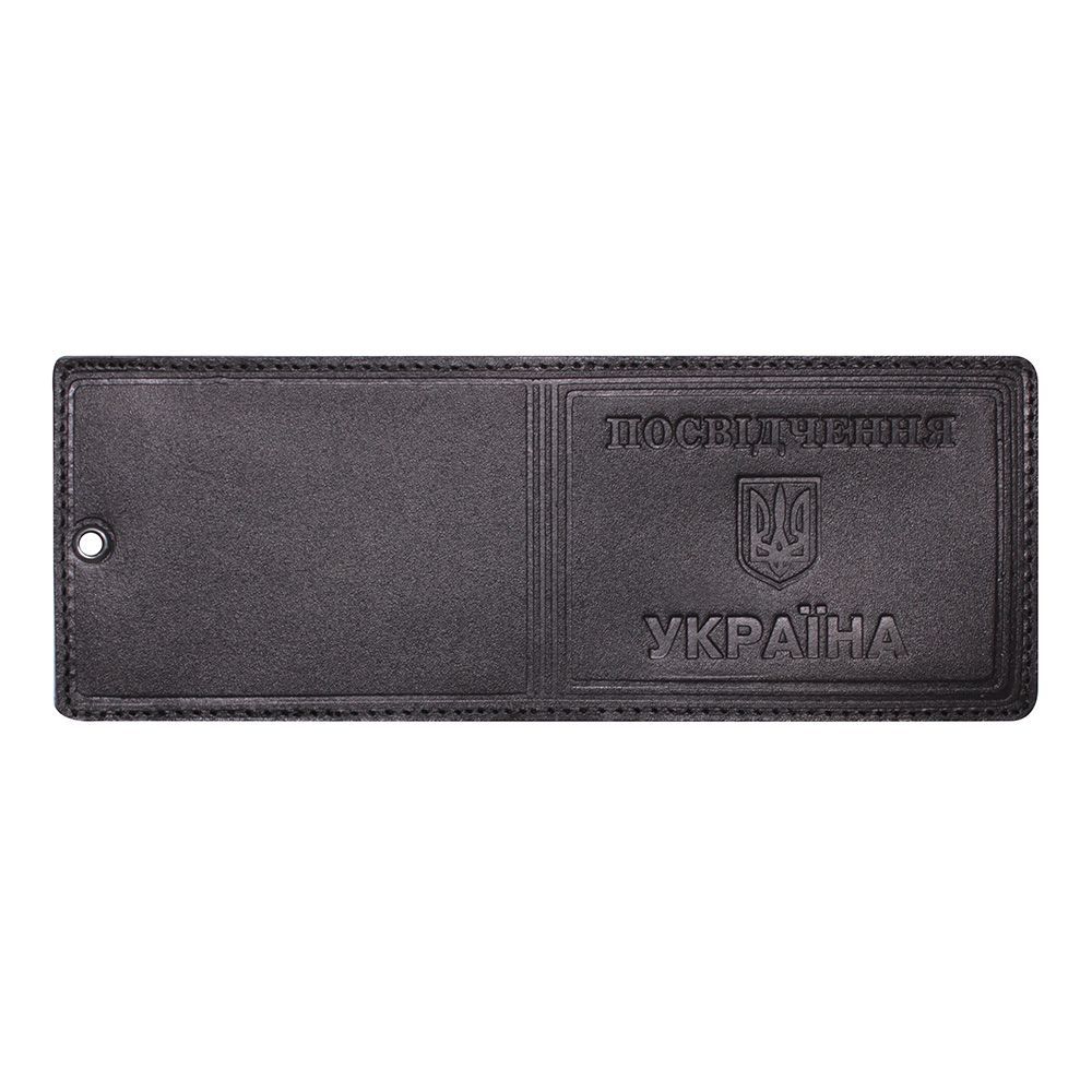 Посвідчення вставляється в кишеньки з прозорими пластиковими віконцями. Ззаду є металевий люверс для ланцюжка, який дозволяє не втратити документ. На зовнішній стороні витиснути напис "Посвідчення Україна" і тризуб.