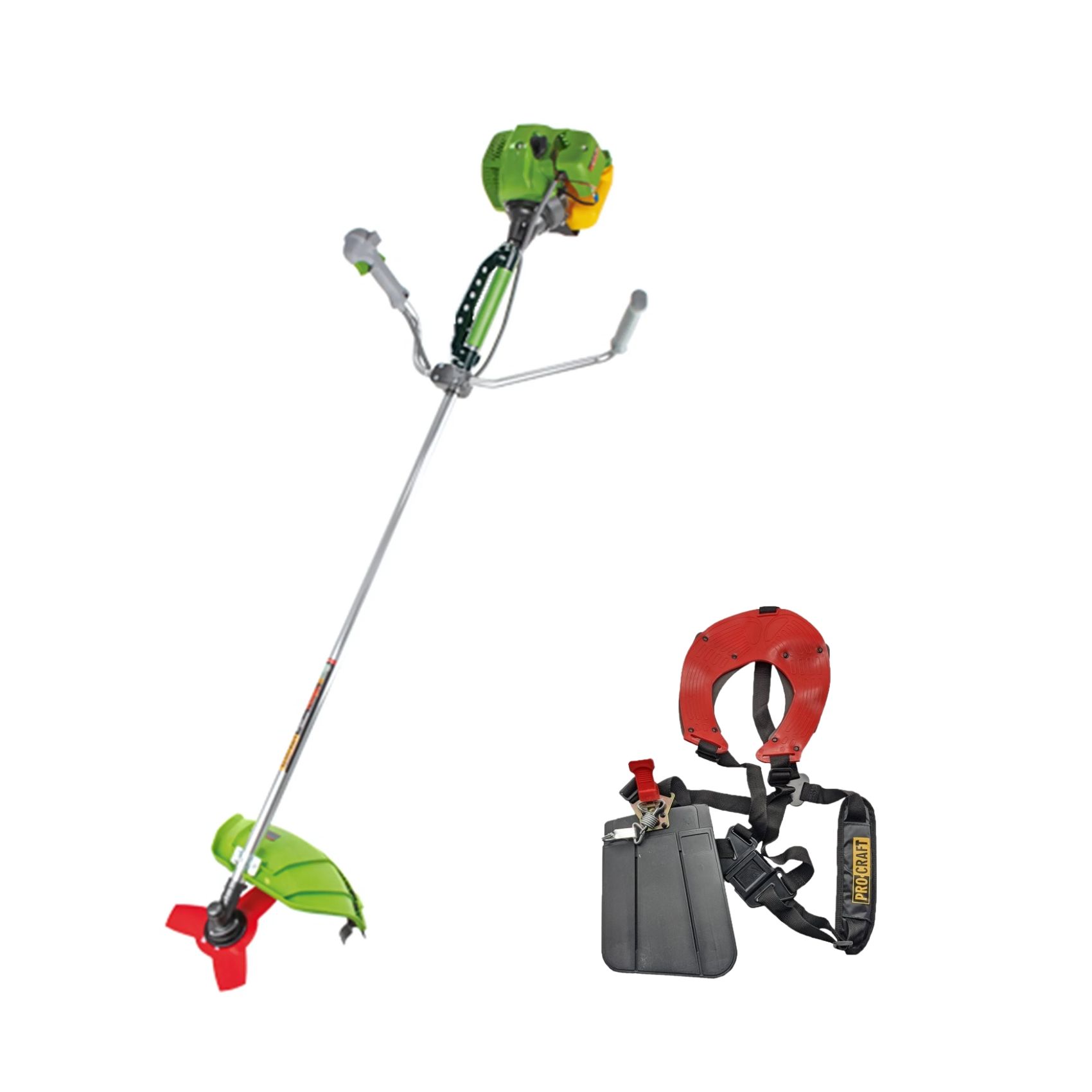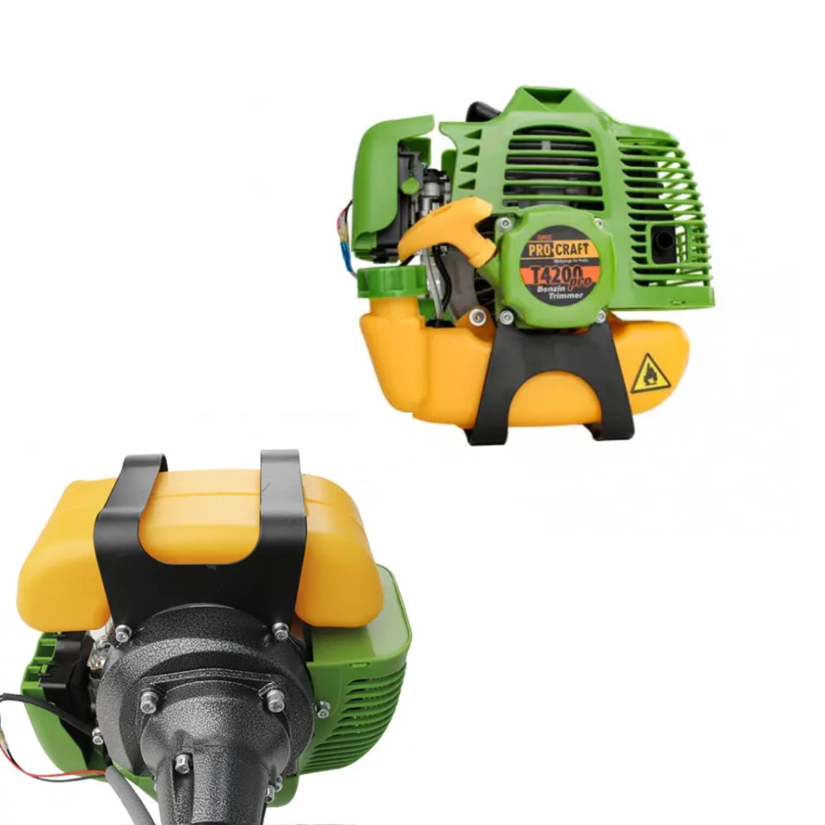 Мотокоса ProCraft T4200 Pro — це потужний та надійний інструмент для косіння трави та дрібних чагарників на присадибних ділянках. Оснащена двотактним двигуном об'ємом 52 куб. см, що забезпечує до 9000 об./хв, вона підходить для побутових робіт. Мотокоса використовує різальні системи: волосінь діаметром 2.7 мм та ніж, забезпечуючи ширину зрізу до 415 мм. Пряма нерозбірна штанга з жорстким приводним валом забезпечує надійність конструкції, а велосипедна форма ручки та наплічний ремінь додають комфорту в експлуатації. Ємність паливного бака — 1.2 л, що дозволяє працювати без частого дозаправлення.