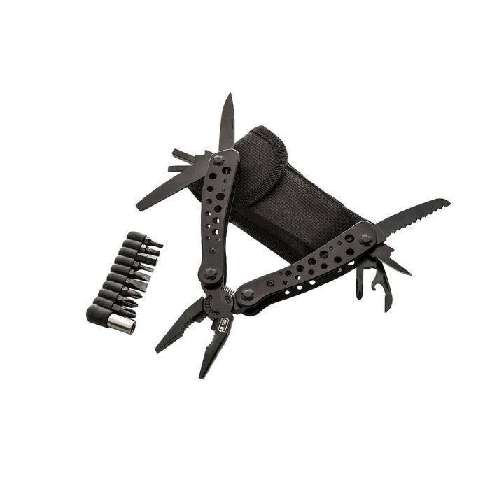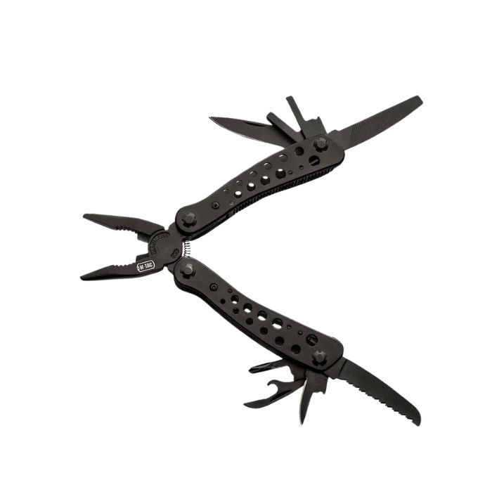Сучасний мультитул від бренду M-TAC оснащений всіма необхідними інструментами, які можуть знадобитись як у повсякденному житті, так і під час тривалого перебування у польових умовах. Виготовлений з нержавіючої сталі 440С марки, що гарантує довговічність та міцність інструментів навіть при довготривалому їх застосуванні. Мультитул TYPE 1 має: ніж, напилок (терпуг), викрутку, бітотримач і 9 насадок різного розміру, шило, консервний ніж і відкривачку для пляшок, хрестову викрутку, пилку та плоскогубці, які розкладаються відведенням рукояток. Всі елементи щільно фіксуються у відкритому та закритому положенні. Завдяки ергономічній формі, мультитул відмінно лежить в руці та не зісковзує під час роботи. Комплектується спеціальним чохлом, який за допомогою стропи можна кріпити до спорядження. Також мультитул добре поміщається в сумці або рюкзаку, не займаючи при цьому багато місця.