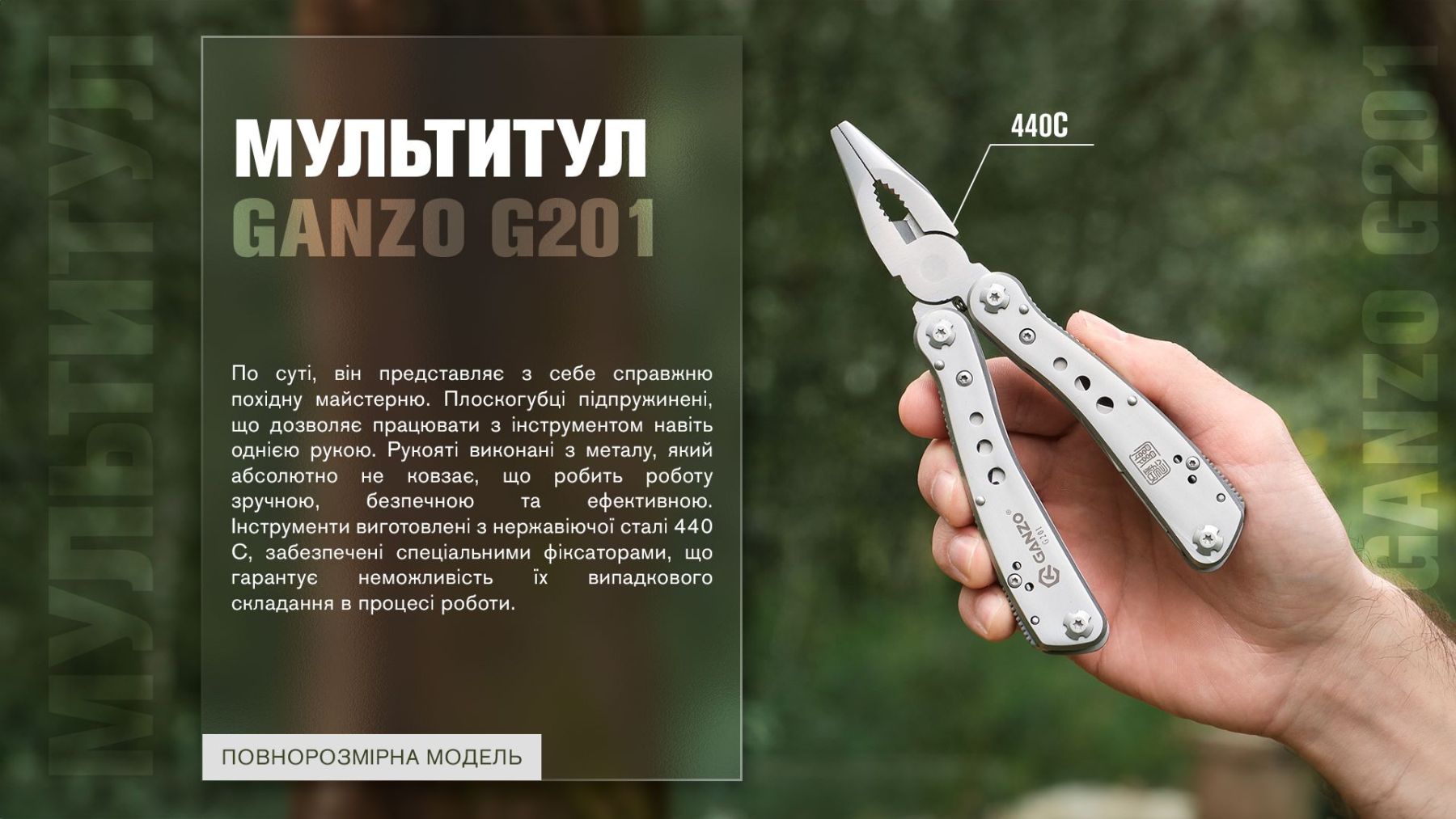 Основні переваги мультитула Multi Tool Ganzo G201: - Висока якість матеріалів. - Компактні розміри і легка вага. - Велика кількість функцій.