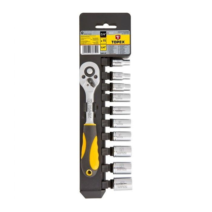 Набір головок + тріскачка Topex - незамінний інструмент для будь-якого майстра або любителя ремонту. У наборі 11 головок, які зручно зберігаються в спеціальному футлярі. Тріскачка забезпечить легку та ефективну роботу з головками. Виготовлений з високоякісних матеріалів, набір має відмінну якість та довгий термін служби. Відмінно підійде для роботи в гаражі, на дачі або в професійному сервісному центрі.