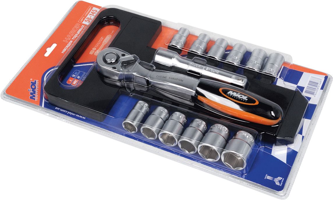 Набір насадок торцевих Cr-V з тріскачкою 1/4'' призначений для використання в автомобілях.