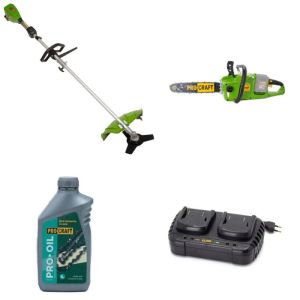 Крім того, коса поставляється з пилкою PCA40/4/2, двома акумуляторами ємністю 20/4, оливою 1л та запчастинами 20/2, що робить її універсальним і незамінним інструментом у вашому саду або городі.