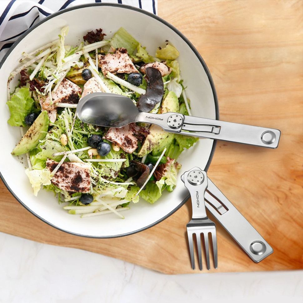 Набір столових приладів Roxon C2 2 in1 призначений для комфортного приймання їжі в польових умовах, під час кемпінгу, подорожей і активного відпочинку. Комплект складається з ложки та виделки з магнітним з’єднанням, що забезпечує компактність і зручність транспортування. Модель є вдосконаленою версією Roxon C1 із покращеною ергономікою.