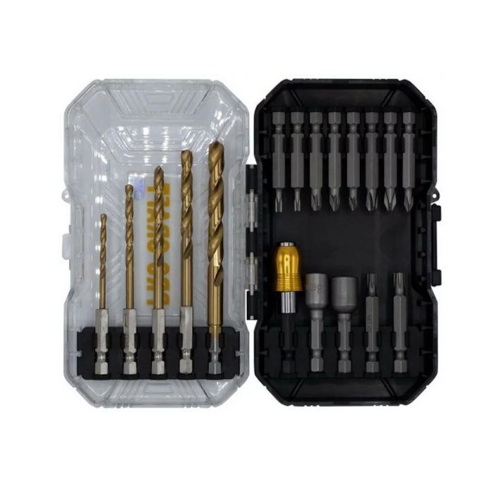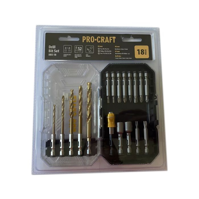 Цей універсальний набір від Procraft включає все необхідне для роботи з різними матеріалами. У комплект входять свердла і біти, які підходять для обробки дерева, металу, гіпсокартону та інших поверхонь.