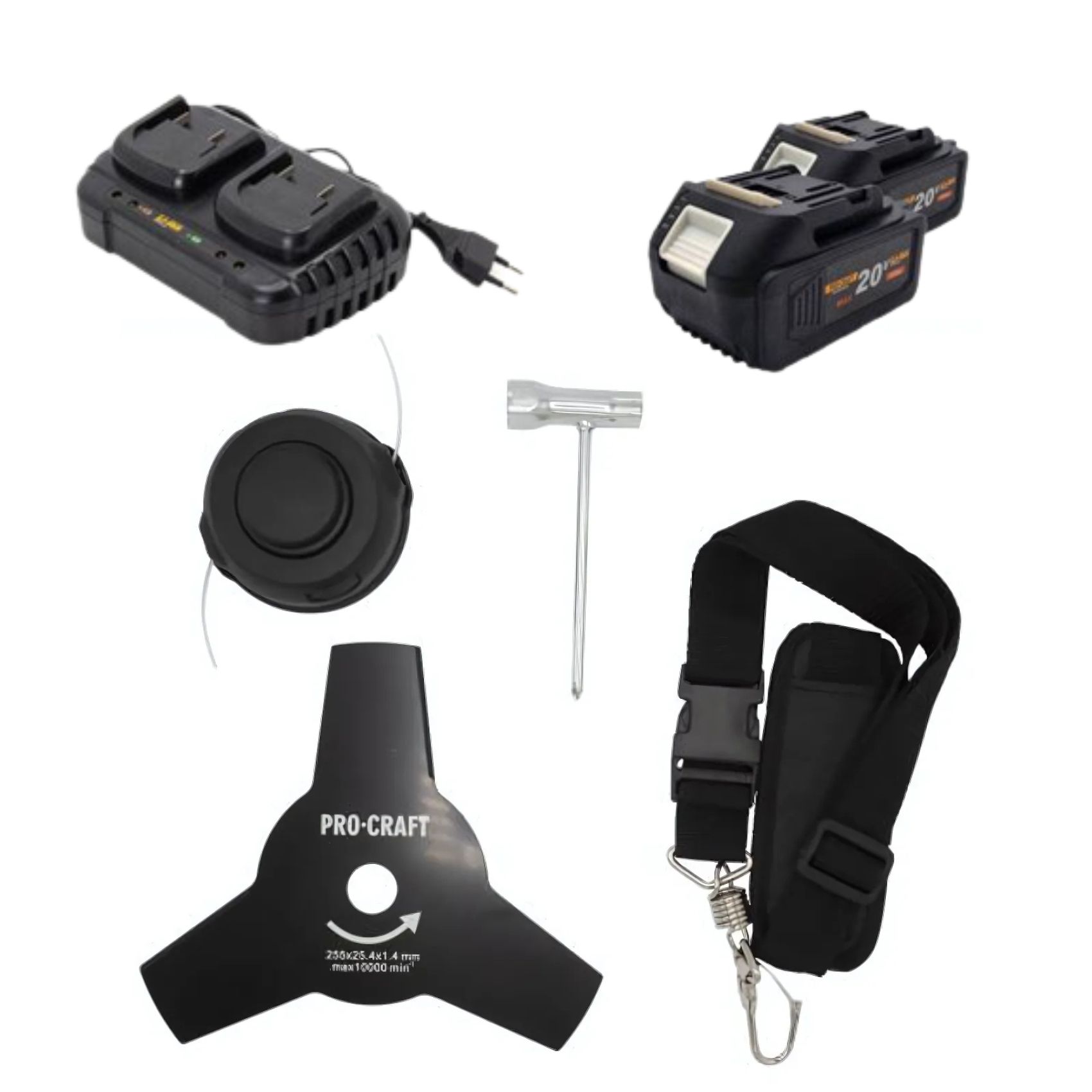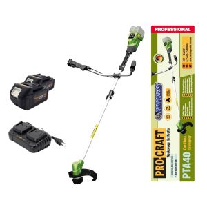 Набір Тример аккум.PROCRAFT PTA40(без акб)Батарея20/4UNIVERSAL-2шт./ Зарядний пристрій 20/1-2шт. є ідеальним вибором для всіх, хто шукає потужний та надійний тример. Цей набір має бездротовий дизайн, що забезпечує максимальну волю рухів та комфорт при роботі. Він оснащений двома універсальними батареями, які забезпечують тривалий час роботи без необхідності відновлення заряду. Зарядний пристрій також входить до комплекту, що дозволяє швидко та зручно заряджати батареї. Цей тример володіє високою продуктивністю та забезпечує бездоганний результат роботи на будь-яких поверхнях. Його легко очищати та обслуговувати, що робить його ідеальним рішенням для будь-якого саду чи городу.