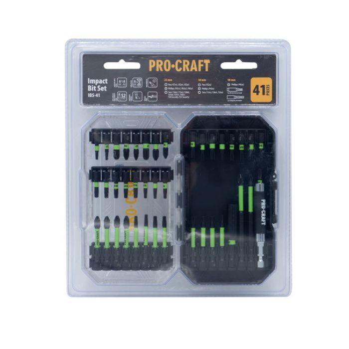 Цей набір біт Procraft ІBS41 є чудовим вибором для тих, хто шукає надійний і різноманітний інструмент для роботи з різними типами кріплень. Зокрема, він включає бітки з різними типами головок, що робить його універсальним для використання з дрилями, шурупокрутами, ключами та викрутками.