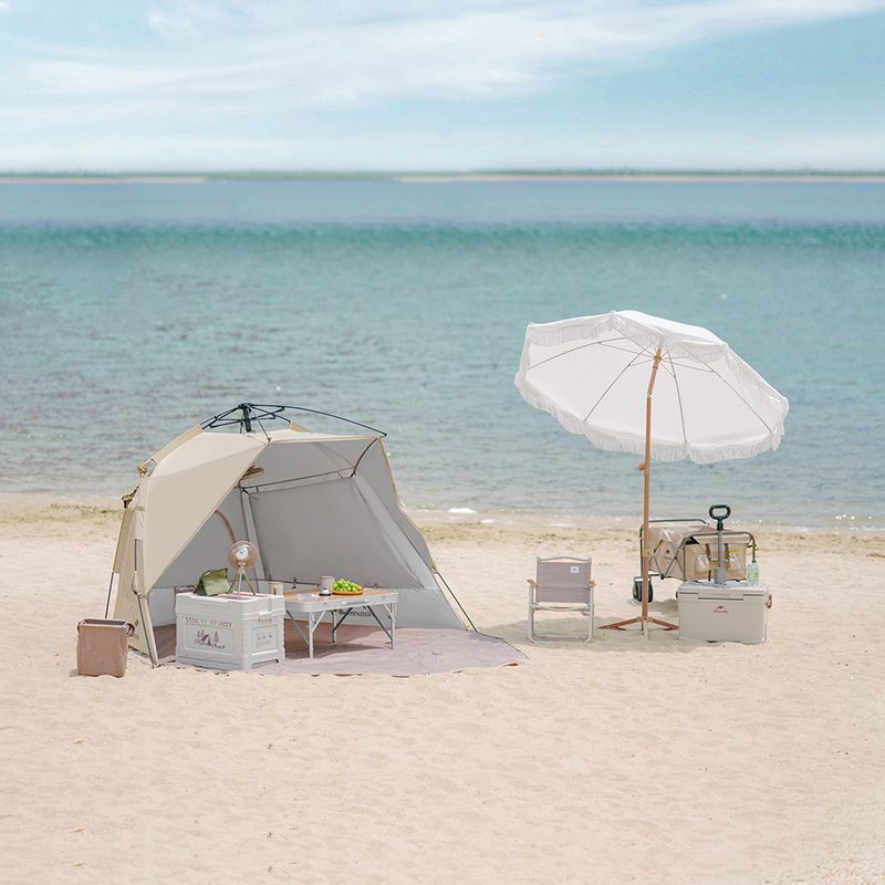 Основні переваги цього намету: легкість встановлення, стійкість до погодних умов, зручність використання, надійність і компактність.