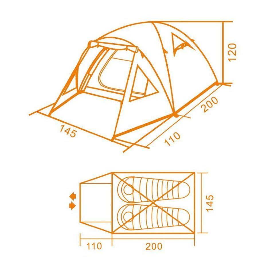 Ємність: В наметі є достатньо місця для двох осіб, що забезпечує комфортний сон та відпочинок