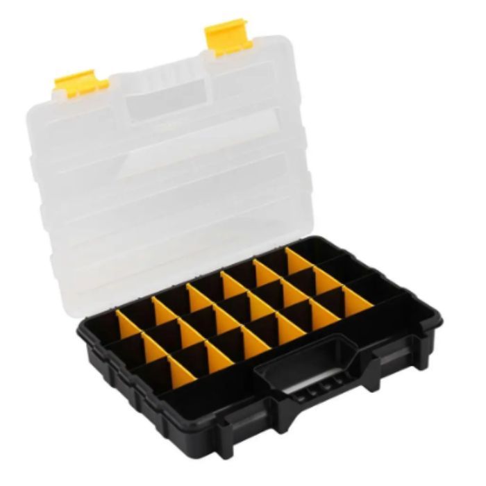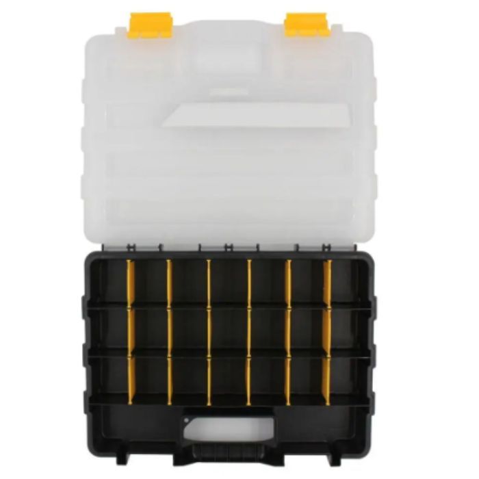 Органайзер 21 осередок, 380*310*60 мм (15') також має інші унікальні властивості, які зроблять ваше зберігання ще зручнішим. Ідеально підходить для сортування дрібних предметів, таких як гайки, болти, скріпки, фурнітура та багато інших. Високоякісний пластик забезпечує захист предметів від пошкоджень та впливу навколишнього середовища.